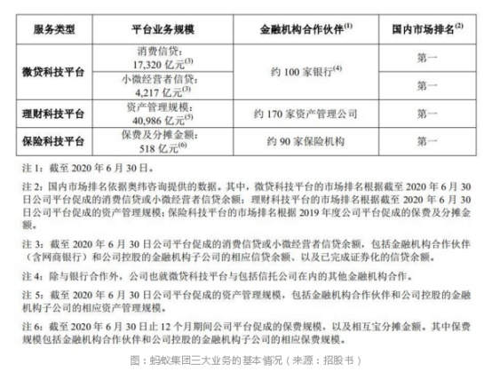 招股书显示,蚂蚁集团已经成为中国最大的线上消费信贷和小微经营者信贷平台、最大的线上理财服务平台,以及最大的线上保险服务平台。