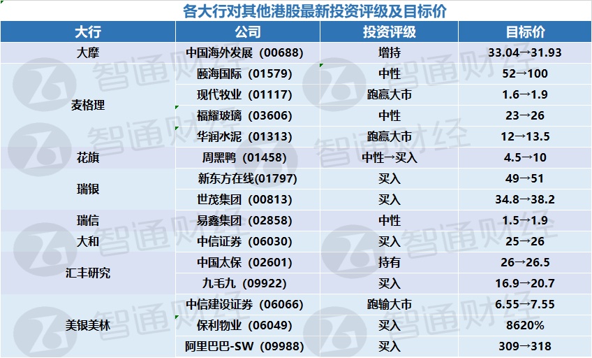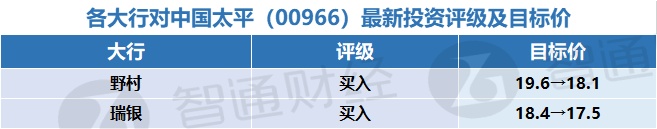 四、各大行对中国太平(00966)最新投资评级及目标价