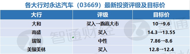 五、各大行对永达汽车(03669)最新投资评级及目标价