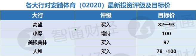七、各大行对安踏体育(02020)最新投资评级及目标价
