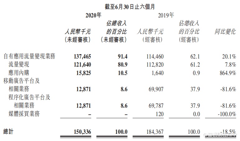 先来看下滑的部分——程序化广告平台业务。从去年的财报就可以看出,赤子城科技在调整业务重心。2019年,其程序化广告平台收入在总收入中占比已明显下降,