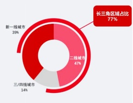 从销售的城市分布来看,弘阳在新一线及二线城市销售占比为86%,其中长三角区域合约销售占比达77%。