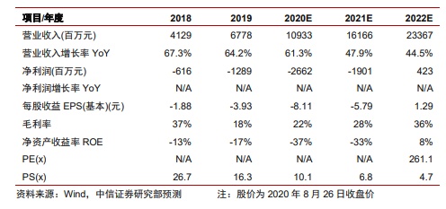 投资建议:我们维持公司2020~2022年营收预测分别为109亿/161亿/233亿元,对应PS10.1x/6.8x/4.7x;维持2020~2022年净利润预测-26.62/-19.01/4.23亿元。我们认为公司是稀缺的互联网核心资产,用户规模有望持续保持高速增长。并且随着广告、直播等业务商业化加速,商业化仍有提升空间,维持“买入”评级。