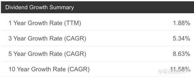 结合上图,近十年来,IBM的股价未有起色,而股息却不断增加。分析师认为IBM在未来几年将有卓越的表现,因为预计其股息将持续增长。