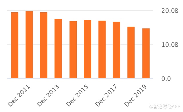 尽管如此,该公司业务也并非一帆风顺。由于公司一直处于转型模式,过去十年来,经营现金流一直呈下降趋势,如下图所示。