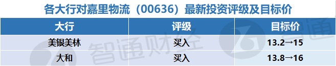 一、各大行对嘉里物流(00636)最新投资评级与目标价