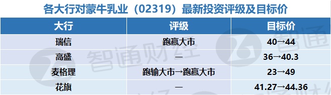 二、各大行对蒙牛乳业(02319)最新投资评级及目标价