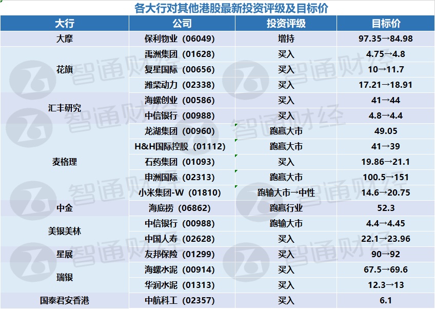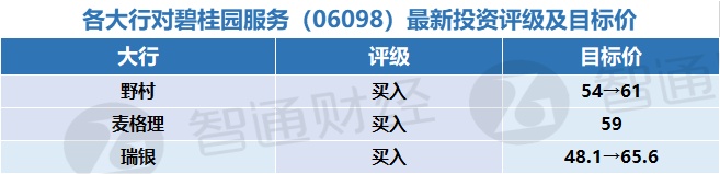 三、各大行对碧桂园服务(06098)最新投资评级及目标价