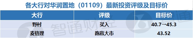 四、各大行对华润置地(01109)最新投资评级及目标价