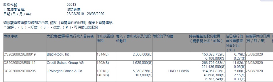 智通财经APP获悉,香港联交所最新资料显示,8月25日,摩根大通增持微盟集团(02013)535.0876万股,每股作价11.8856港元,总金额约6359.84万港元。增持后最新持股数目约为1.14亿股,最新持股比例为5.06%。