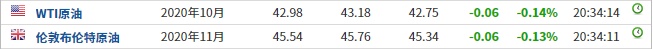 截至发稿,WTI原油跌0.14%,报42.98美元/桶。布伦特原油跌0.13%,报45.54美元/桶。