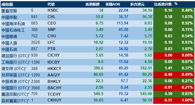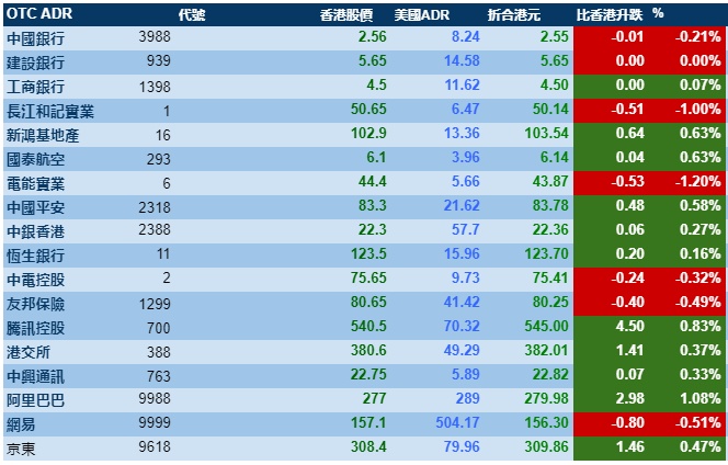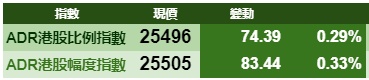 智通财经APP获悉,周五美股进一步上扬,其中标指和纳指创新高,刺激港股ADR指数全日做好,按比例计算,收报25496点,升74.39点或0.29%。