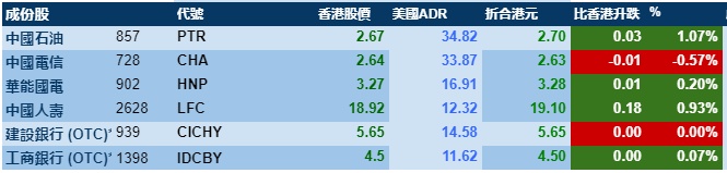大型蓝筹上涨为主,汇丰控股收报34.16元,较港收市升0.16元;腾讯控股收报545.00元,较港收市升4.50元。