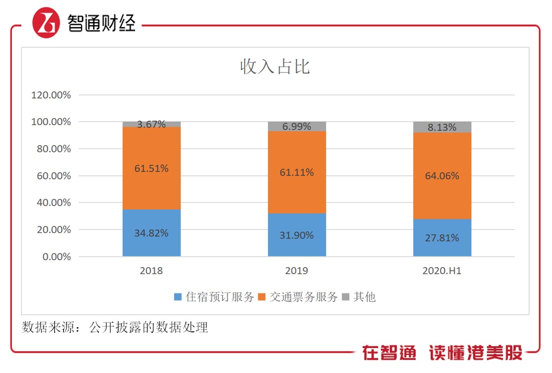 2020年Q2,由于市场信心显著提升及旅行需求逐步释放,同程艺龙各项业务环比复苏明显,交通票务服务业务收入7.26亿元,环比增长5.72%,住宿预订服务业务收入3.84亿元,环比大幅度增长67.7%。该公司业务结构稳定,交通票务服务占大头,收入占比往年稳定在60%以上,2020年抗跌性较强,收入贡献有所提升。