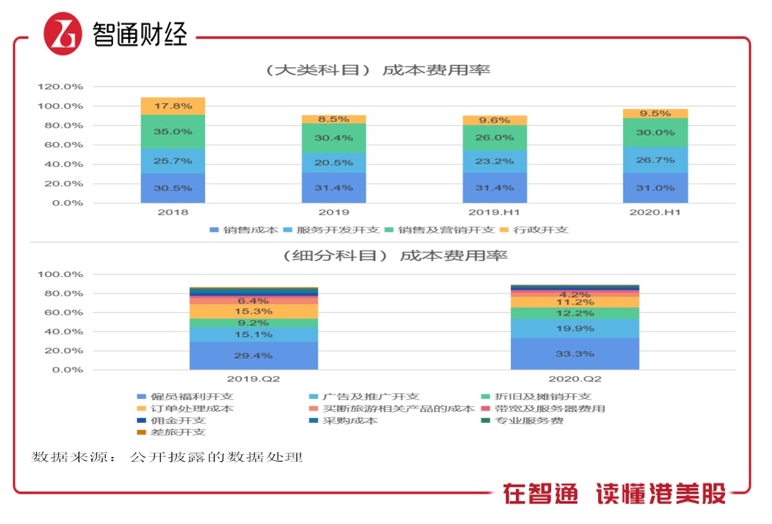 此外,部分细分费用占比比较小的科目下降幅度较大,比如专业服务费和差旅开支,于Q2期间下分别下降95.5%和55.3%,上半年分别下降45.7%和63.2%。同程艺龙严控成本费用,也保证了盈利能力。