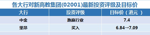 一、各大行对新高教集团(02001)最新投资评级与目标价