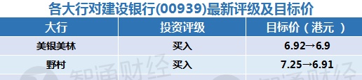 二、各大行对建设银行(00939)最新投资评级与目标价