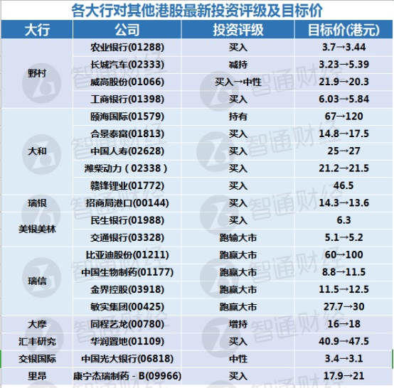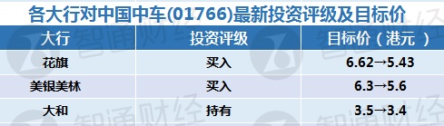 三、各大行对中国中车(01766)最新投资评级与目标价