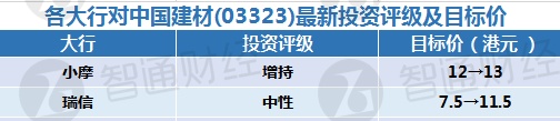 四、各大行对中国建材(03323)最新投资评级与目标价