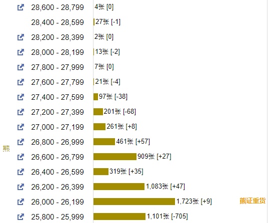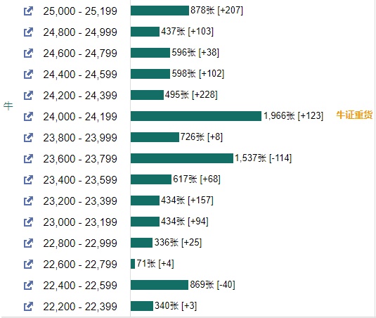 智通财经APP获悉,截至8月31日,恒指最新的牛熊街货比例64:36。摩根恒指牛熊证街货分布图中的数据显示,熊证街货重货区在26000-26199区间,该区间最新熊证数量为1723张,较上一交易日增加9张,最多新增26800-26999区间,该区间最新熊证数量为461张,较上一交易日增加57张。牛证街货重货区在24000-24199区间,该区间最新牛证数量为1966张,较上一交易日增加123张,最多新增区间在24200 -24399区间,该区间最新熊证数量为495张,较上一交易日增加228张。