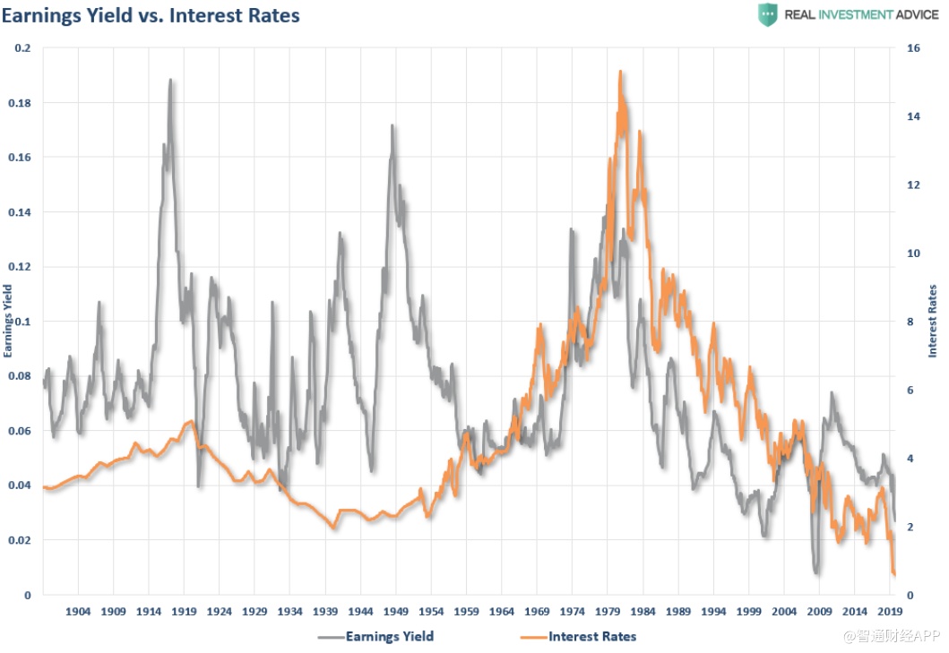 异常高的利率(已经出现过两次)与低股市估值同时出现,这一事实并不能证明高利率“导致”股票估值偏低。但至少历史记录与这种说法是一致的。
