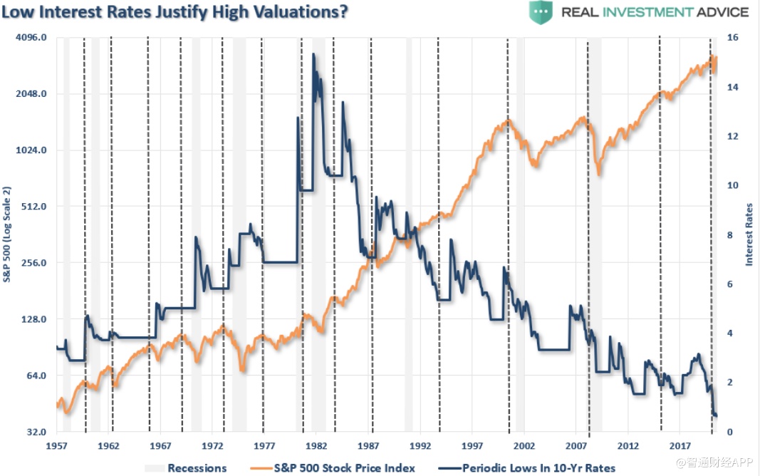 智通财经APP获悉,有投资者认为,低利率证明了高估值是合理的,但Realinvestmentadvice分析师Lance Roberts表示,这只是投资者在牛市后期为高价买单找的借口而已。