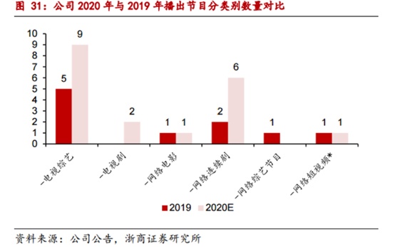 浙商证券认为,《一念无间》经过2年制作,为公司 2020年放量核心节目之一,预计于2020年第三季度交片播出,商业价值释放值得期待,另外,公司节目储备丰富多元,预计于2020年播放18套节目,估算总成本17.06亿元,包括9套综艺,2套电视连续剧与 6 套网络电视剧。随着连续剧的逐步上线,2020年公司有望实现综艺、连续剧收入贡献1:1,产品结构改善带动收入利润翻倍增长。