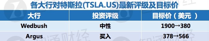 Wedbush将特斯拉目标价从1900美元下调至拆股调整后的380美元,看好的情况下目标价为700美元,维持“中性”评级。