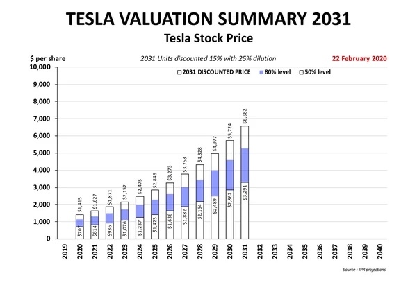 如果将市盈率翻倍,那么特斯拉的估值水平将得到飞跃性提升。也就是说特斯拉2020年每股价格将达到3442美元。