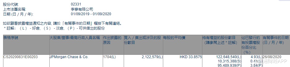 智通财经APP获悉,香港联交所最新资料显示,8月26日,摩根大通减持李宁(02331)212.26万股,每股作价33.8575港元,总金额约为7187万港元。减持后最新持股数目为1.23亿股,最新持股比例为4.93%。