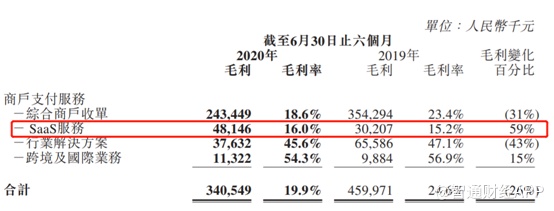 财报显示,2020年上半年汇付天下SaaS服务完成交易量1108亿元,同比增长45%;交易笔数155896万笔,同比大增159%,单日扫码交易峰值超1300万笔;实现营业收入3亿元,同比增长51%;毛利4814.6万元,同比增长59%。今年上半年,汇付天下合作的SaaS机构由2019年底的392家增长至457家。今年8月20日,公司通过投资奥琦玮等公司以战略合作方式布局场景类SaaS业务。