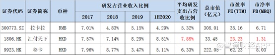 而同行拉卡拉(300773)的PE(TTM)为35.16倍,PB为6.71倍;移卡(09923)的PE(TTM)更是高达62.23倍,PB为8.03倍。同行两家公司估值远高于汇付天下。