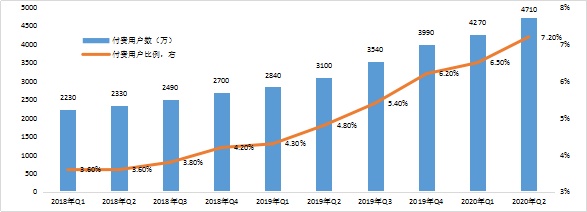 不只是音频领域,类似的现象也普遍发生在视频领域、电子阅读领域等等,比如爱奇艺(IQ.US)付费会员从2018年Q1的0.80人增至2020年Q2的1.05亿人,与之对应的是爱奇艺的收入大幅提升。