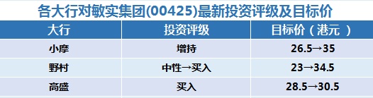一、各大行对敏实集团(00425)最新投资评级与目标价