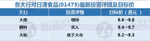 三、各大行对日清食品(01475)最新投资评级与目标价