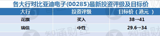 四、各大行对比亚迪电子(00285)最新投资评级与目标价