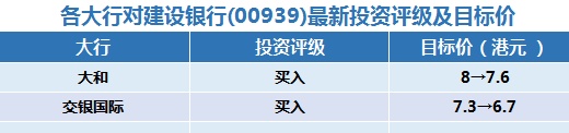 五、各大行对建设银行(00939)最新投资评级与目标价