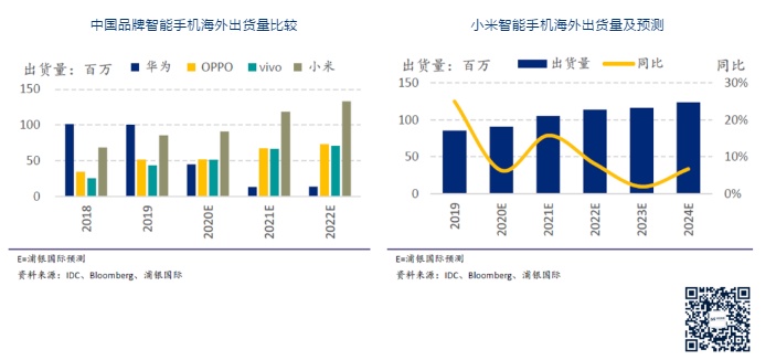 当然,我们的基本假设是在2021年华为保持1.6亿部的智能手机出货,而小米完成西欧市场的初步切入。在2022年,中美关系没有显著变化的情况下,小米智能手机将持续增长,超越华为,成为全球第三。因此,即使不遇到华为事件性风险,小米也将在两年内挤入全球第三的位置。小米依然是最闪耀的星。