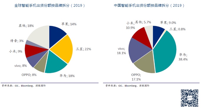 在这种极端假设下,我们认为小米有能力取得华为35%-50%的空间,即7000万部到1亿部的空间。结合小米2019年1.25亿部的出货量,小米在此假设下可以做到2亿-2.3亿部的智能手机出货量,增量空间为56%到80%之间。小米主要可以在中国的线上渠道、国内一线城市零售渠道以及海外市场取得华为留下的空间。也就是说,如果华为面对无法应对的中美关系摩擦,那么小米将最有机会接棒华为,从出货量的角度挑战全球第一第二即三星和苹果的龙头地位。