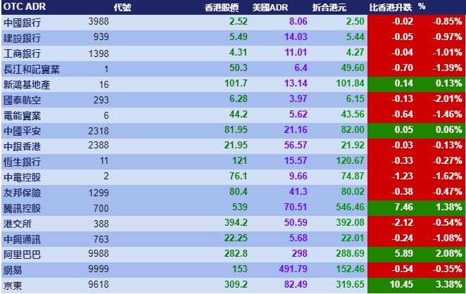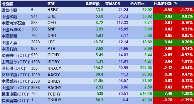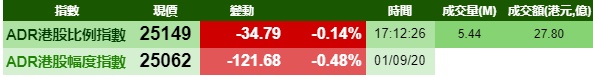 智通财经APP获悉,周二美股指数再创新高,但港股ADR指数未能跟涨,按比例计算,收报25149点,跌34.79点或0.14%。
