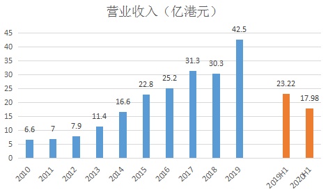 智通财经APP由公司近十年的发展路径观测到,公司的规模随着其在港股市场的深耕不断壮大。2019年,公司营收创上市以来历史新高至42.5亿港元。