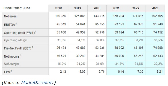 其次,分析师预计微软的财务在未来两年将保持或多或少的增长速度。实际上,分析师们认为,卫生事件对微软业务和增长势头几乎没有影响。这使得微软成为了一支稳固的成长型股票,据预测,该公司不会受到卫生事件爆发和外部贸易环境日益紧张的影响。