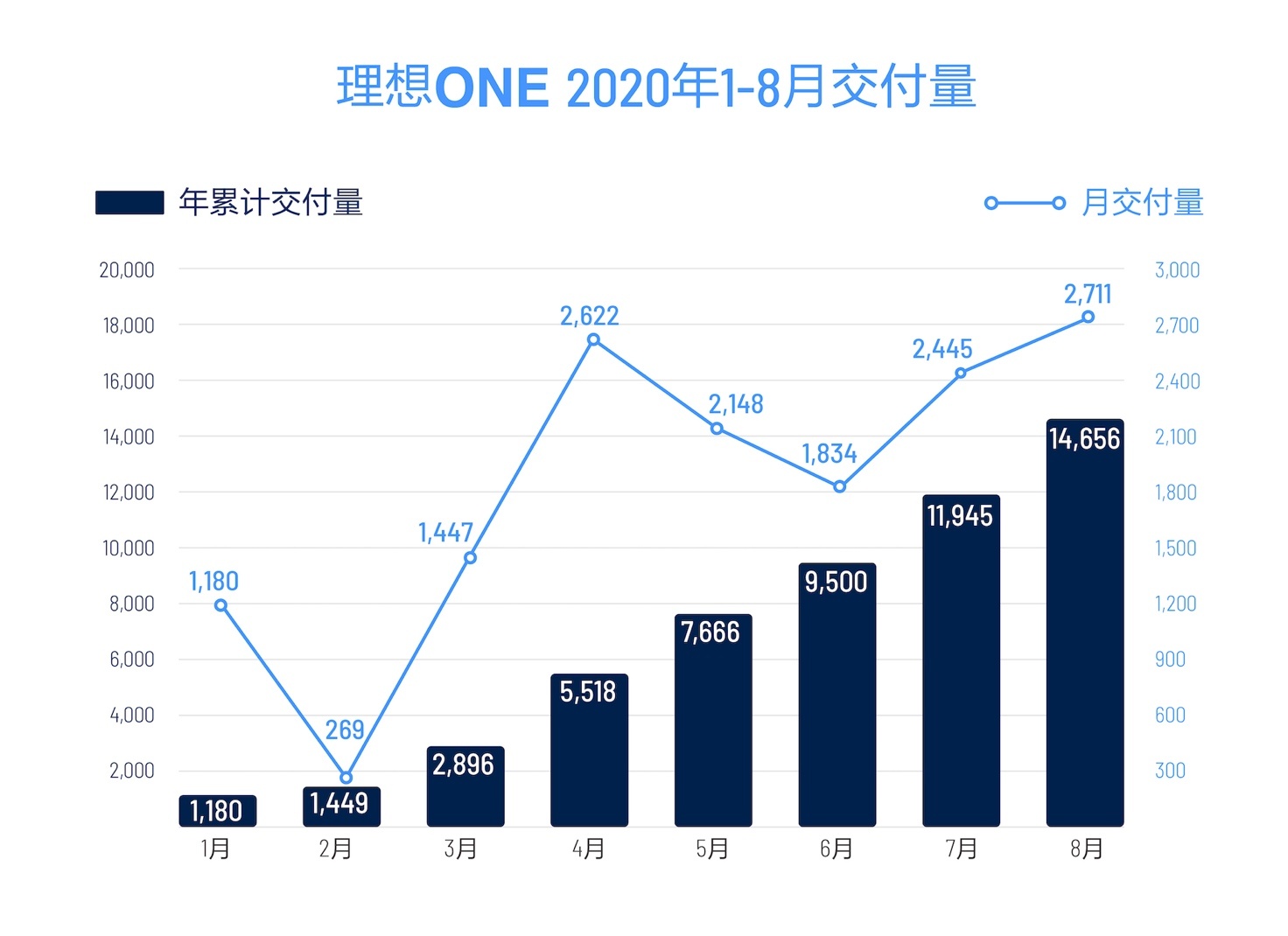 智通财经APP获悉,理想汽车(LI.US)于9月2日宣布8月份公司整体交付数据;数据显示,理想ONE型汽车在8月份总计交付2711辆次,创公司单月交付量新高。据悉,2020年前八个月份,理想ONE车型总计交付达到14656辆次。