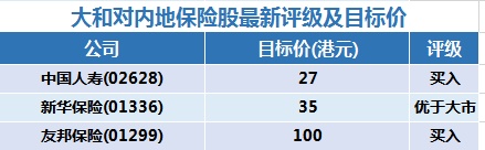 智通财经APP获悉,大和发表研究报告表示,中国内地保险企业上半年净利润以及新业务价值都较预期稍弱。对于下半年,该行认为,在资产和负债方面都将会有正面因素推动一些企业的评级。行业首选为中国人寿(02628)、新华保险(01336)和友邦保险(01299)。