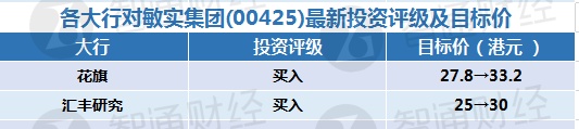 四、各大行对敏实集团(00425)最新投资评级及目标价