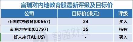 三、富瑞对内地教育股的最新评级与目标价