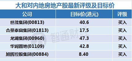 二、大和对部分内地房地产相关股的最新评级及目标价