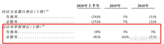 新开店数量下滑也罢,必胜客同店客单价也不断下滑。招股书显示,必胜客的同店客单价2018年下滑2%,2019年持续下滑,且下滑幅度达到6%。而反观肯德基,近几年同店客单价不断上升,受公共卫生事件影响,肯德基同店客单价甚至提高18%,而必胜客则下降8%。