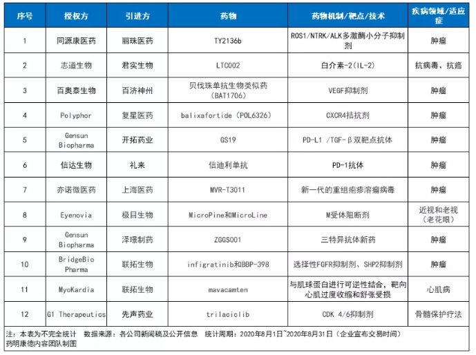 炎炎8月,中国医药行业的授权交易合作热度不减。据不完全统计,至少有12起授权合作在上个月达成,涉及创新产品有双特异性抗体、三特异性抗体、新一代溶瘤病毒及多种小分子抑制剂等。在君实生物(01877)、百济神州(06160)、礼来(LLY.US)、先声药业、开拓药业-B(09939)等多家公司引进产品的同时,亦诺微医药、信达生物(01801)、百奥泰生物等公司也实现将旗下产品授权出去。本文中,我们节选部分备受关注的授权案例,看看这些交易都涉及哪些创新疗法和技术。