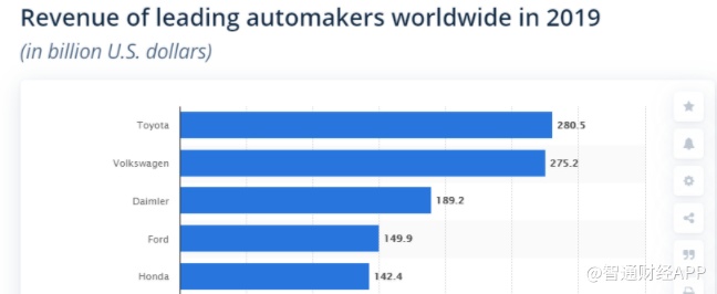 上图显示了世界上收入最高的五大汽车制造商。这些公司的年收入合计为1.037万亿美元,这些汽车制造商的息税前利润率为5.5%,很少有汽车制造商能够在没有大量债务的情况下实现其规模。